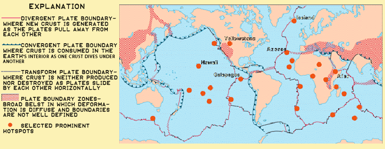 These maps show Hot Spots and Plate Boundaries around the world