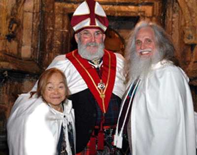 We also noted that around the same time of this proposed pilgrimage, the International order of Gnostic Templars would be in Scotland. After reading Mark’s book, Guardians of the Holy Grail, and also the Introduction by Ian Sinclair, a Grand Prior of the Scottish Knights Templars and direct descendant of the Sinclair bloodline who built Rosslyn Chapel near Edinburgh, and the Clan that kept the original Knights Templars going after their hasty departure from France and subsequent journey to Scotland, we felt it compulsory to join in the good fight and help re-establish a modern day Templar Organization that would shed light on the truth for planet Earth as regards Geopolitics, bring balance (male-female – yin-yang) to Mother Earth and help restore the original Goddess teachings on Earth. How could we, as Ambassadors of the Interplanetary Confederation become involved in any one Organization down on a planet we had come to serve? That remains to be worked out. But join we did and join for the sake of Mother Earth we could not resist. We were subsequently invited by Mark and Andrea to take Initiation into the ancient order of Chivalry via the Knights Templar thru IOGT and would have our Initiation at none other then Rosslyn Chapel on December 10, 2004.