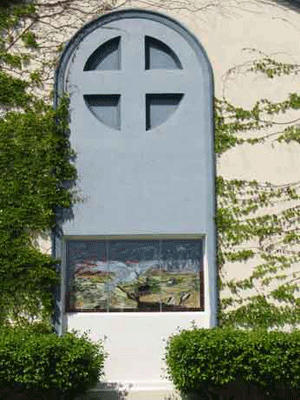 Solar Cross Symbol with Dove on Church